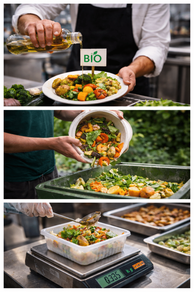 - Lutte contre le gaspillage alimentaire (pesée, compost, redistribution)